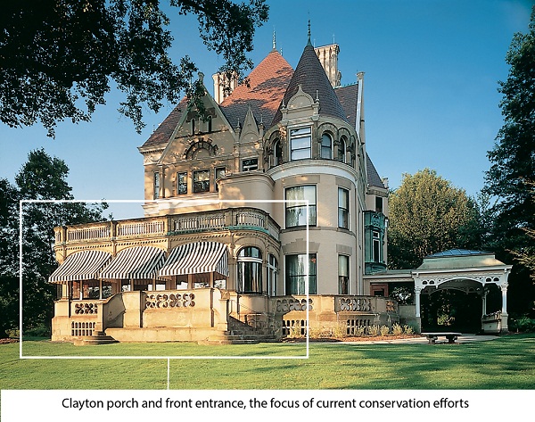The overarching philosophy of this conservation effort is to minimize intervention into the historic surfaces and to employ a combination of historic masonry techniques, science, and innovation to preserve Clayton. The house itself is treated as an artifact, and our goal is to devise methods of treatment that counteract the effects of time and the environment on the structure and the inherent vice of the materials, systems, and techniques used in its construction. Inherent vice is a term conservators and preservationists use to describe the inevitable self-destruct mechanism in materials or combinations of materials in a system that causes them to deteriorate. To a degree, inherent vice is present in virtually all systems and materials and is a determining factor in approaches taken to maintain a building. .png)