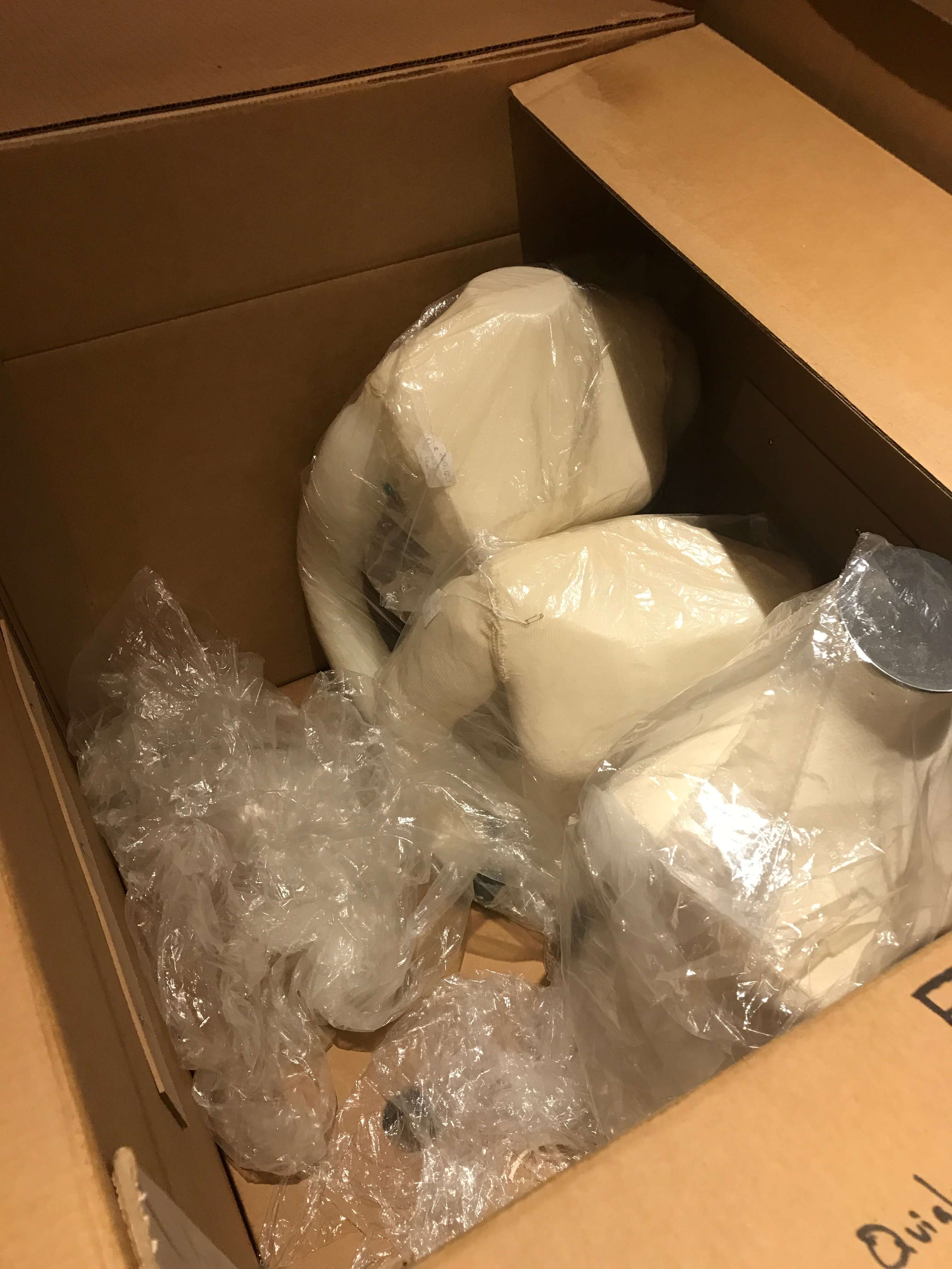 Unpacking boxed mannequins.