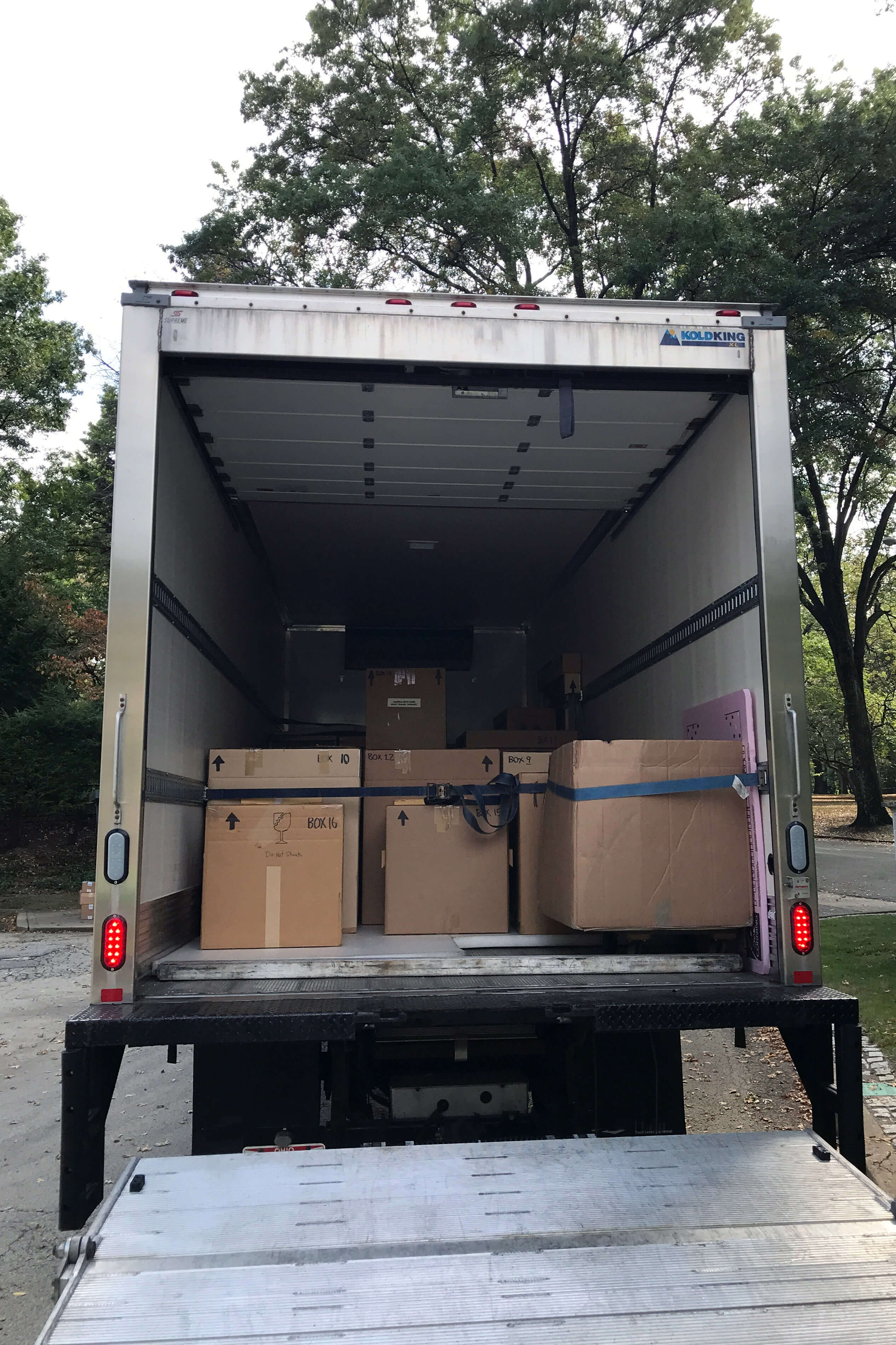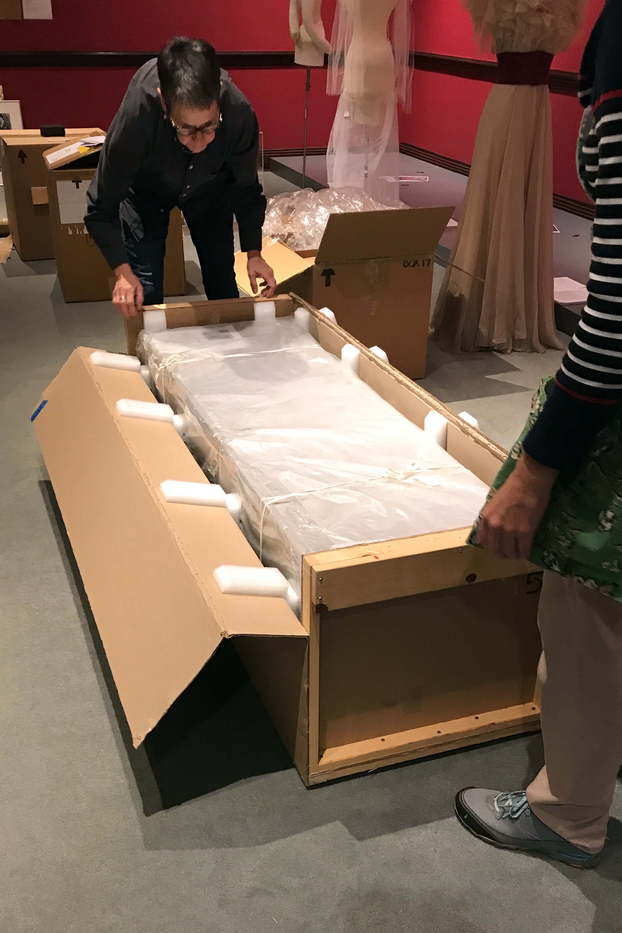 The exhibition arrived with costumes, mannequins, movie posters, and photos safely packed in a combination of crates and boxes.