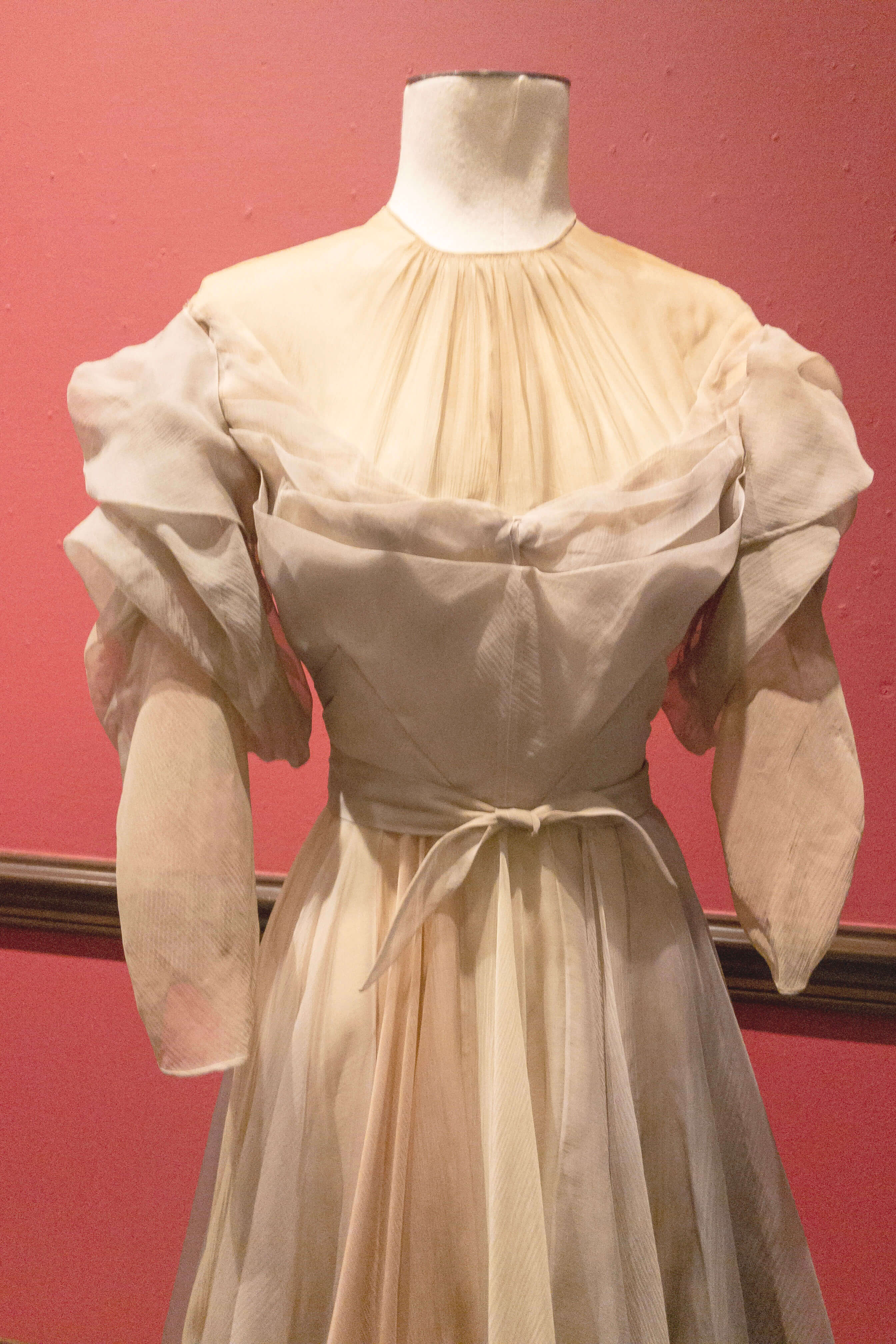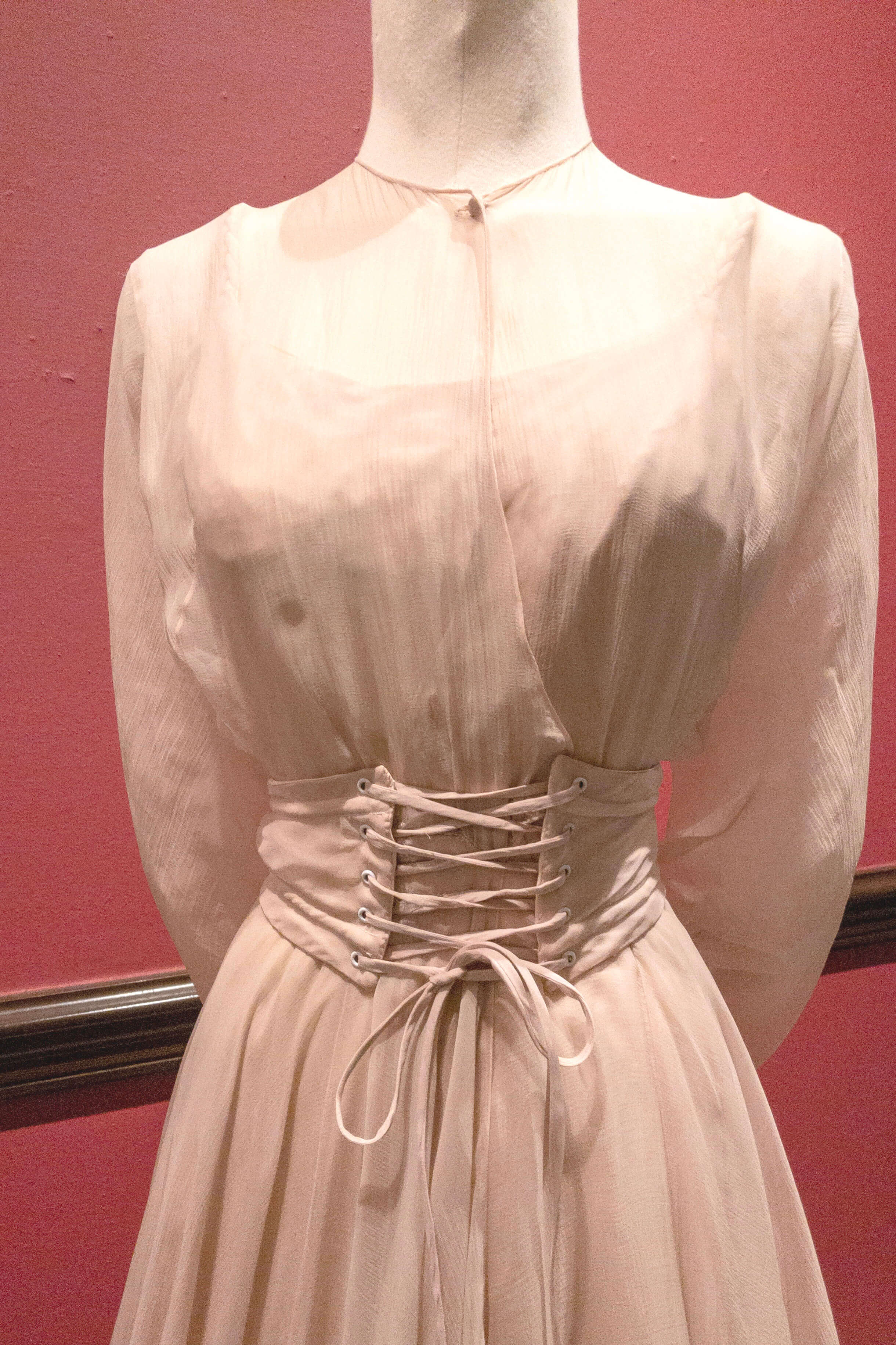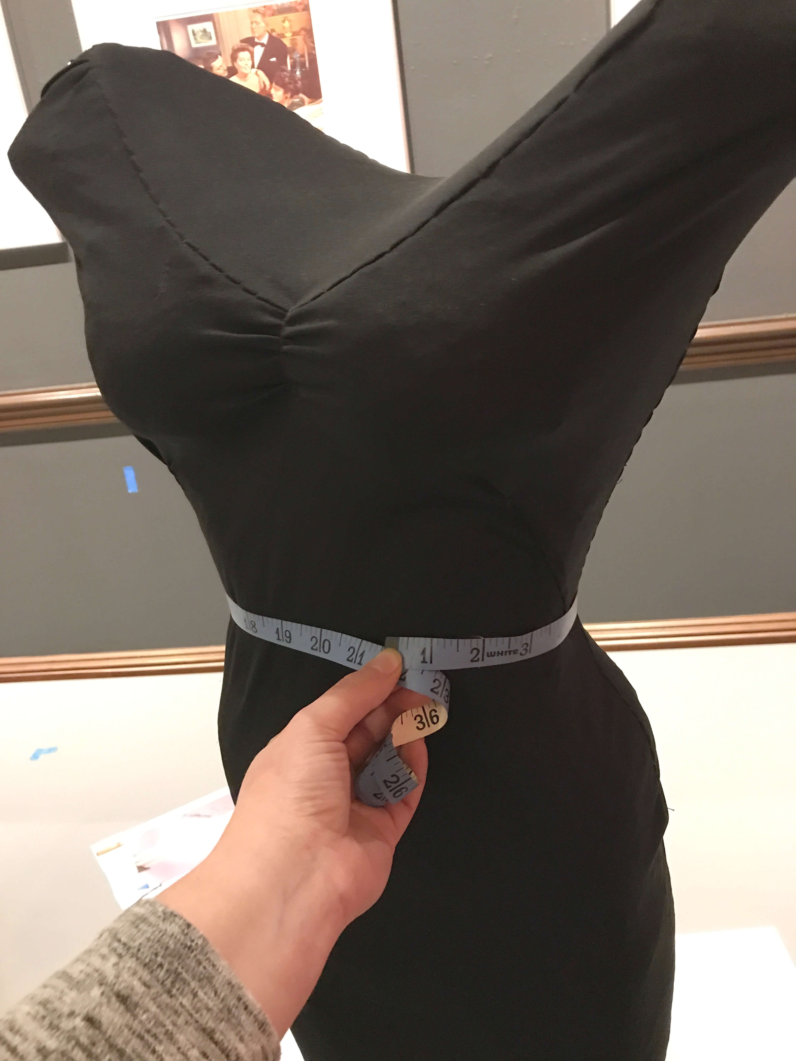 This dress form was specially-made for the costume from Adam’s Rib, because it was too difficult to find a form that the dress would fit snugly—the waist measures 21 ½ inches.
