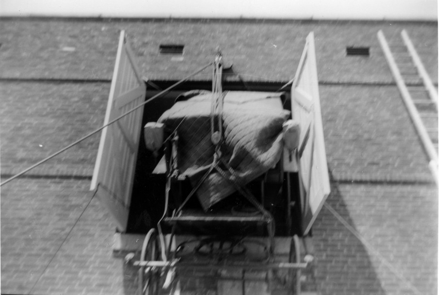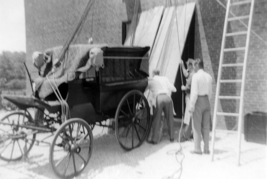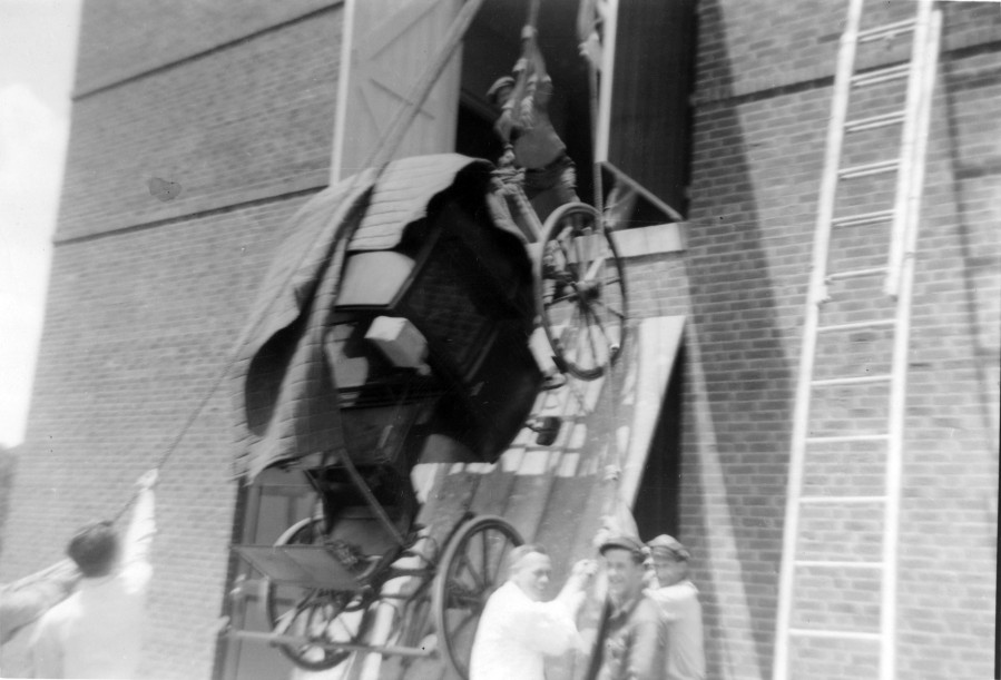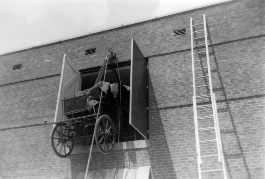 Installing the carriages on the second floor of the new carriage house, 1955. Images courtesy the Frick Collection and Frick Art Reference Library.