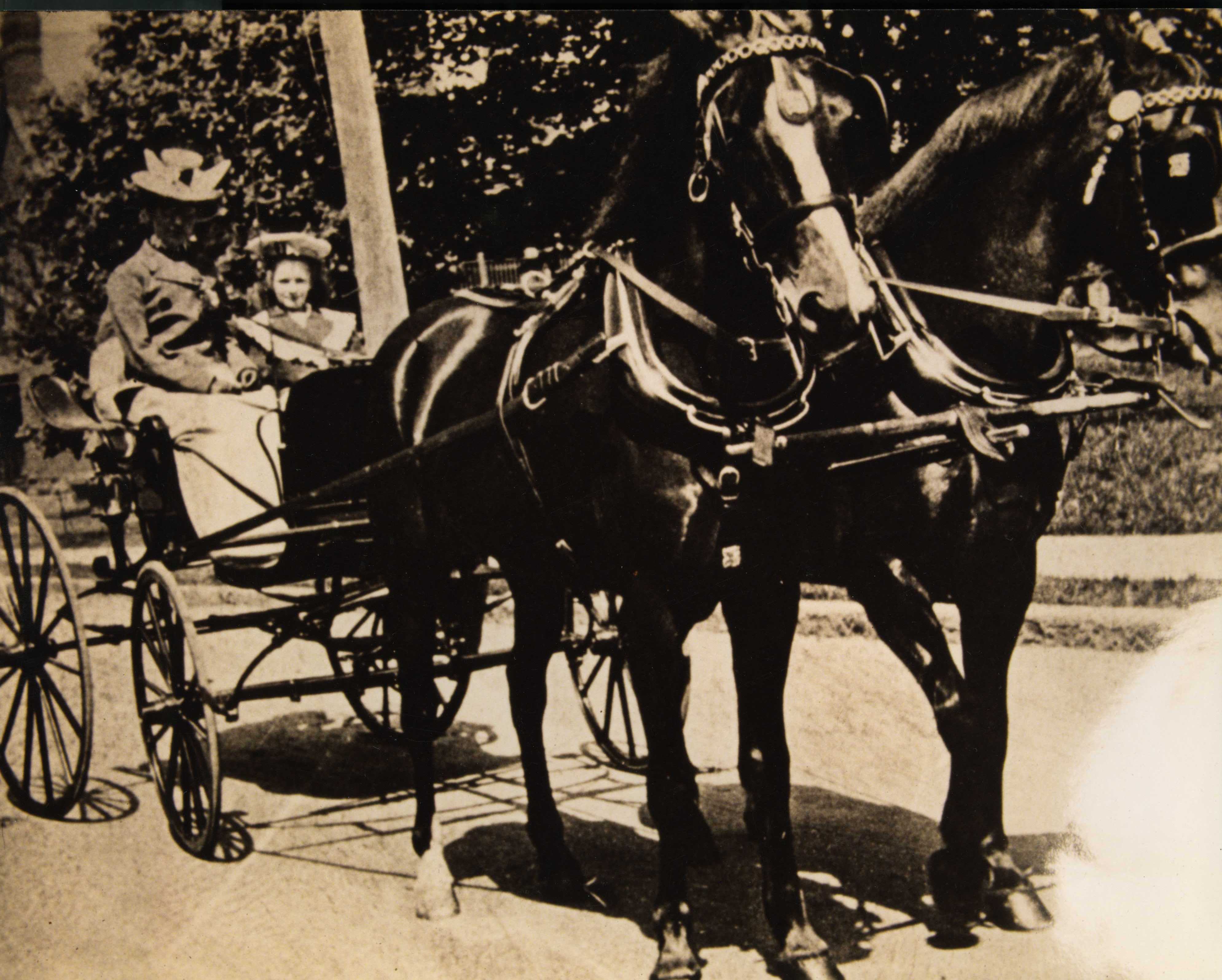 Adelaide and Helen Frick driving a piano-box style carriage at Wood Rock the estate of Herbert M. Sears in Massachusetts, c. 1902. Image courtesy the Frick Collection and Frick Art Reference Library.