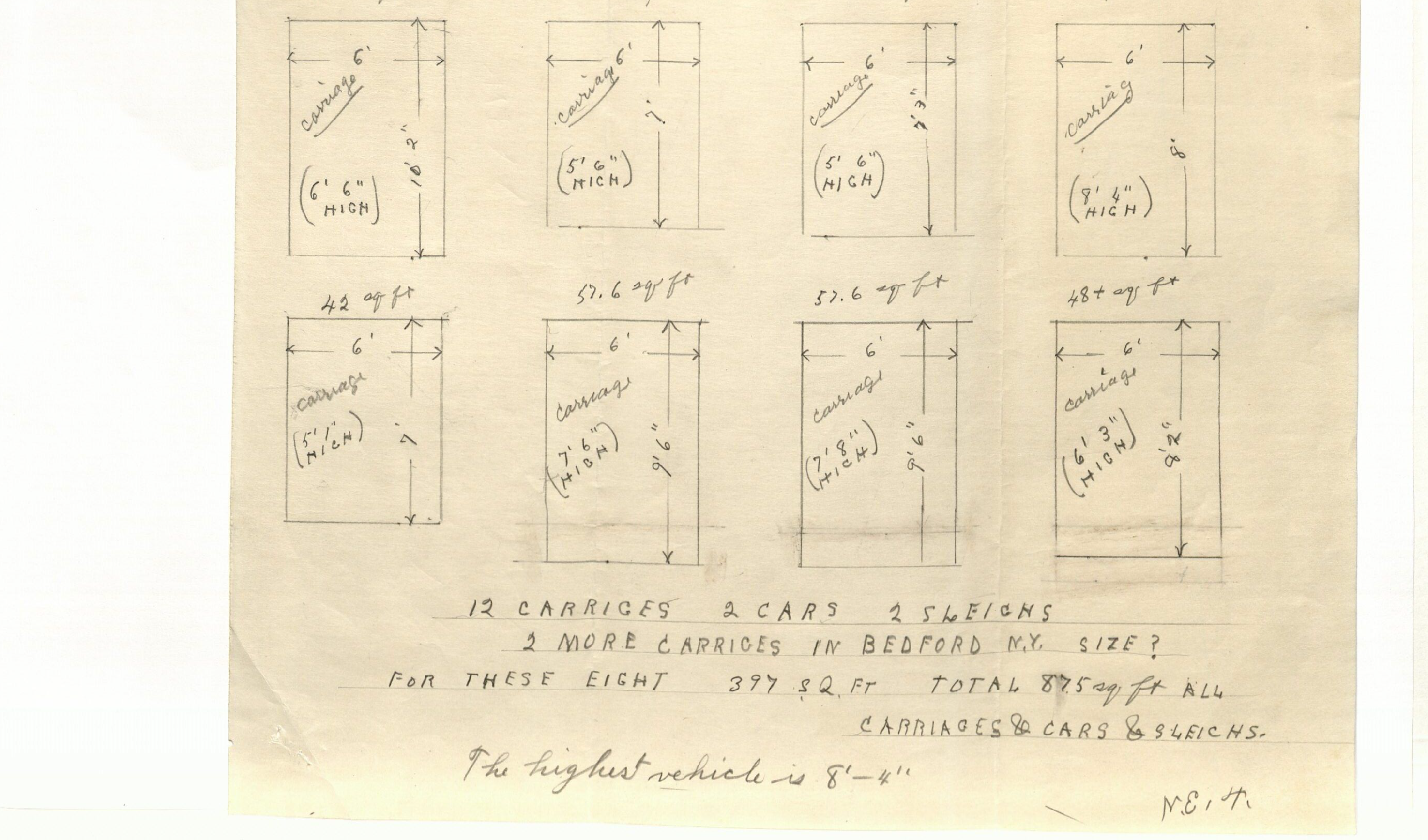 Letter, sketches, and carriage descriptions from N. E. Thompson to Walter Cooley. Thompson mentions in this letter that there are two carriages at Bedford, New York (Helen’s residence), but is not sure if they are to be counted, September 22, 1954. Images courtesy the Frick Collection and Frick Art Reference Library.