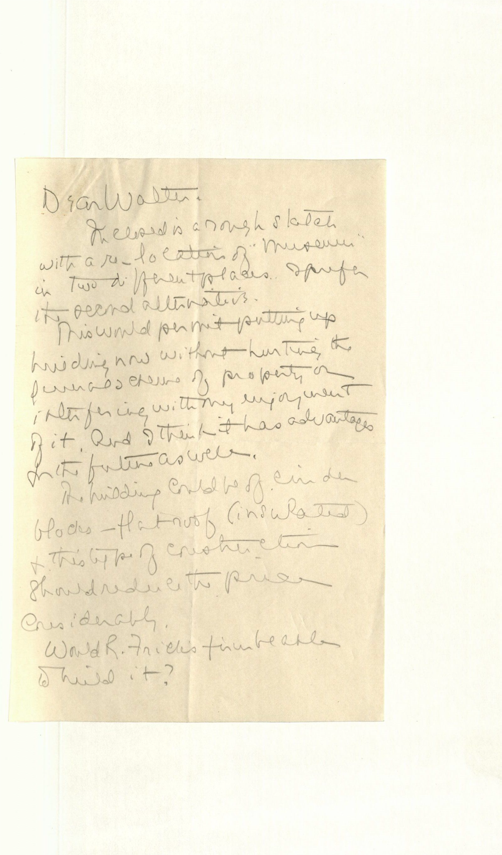 Letter and sketches from Helen Clay Frick to Walter Cooley regarding plans for the new carriage museum, 1954. Images courtesy the Frick Collection and Frick Art Reference Library.