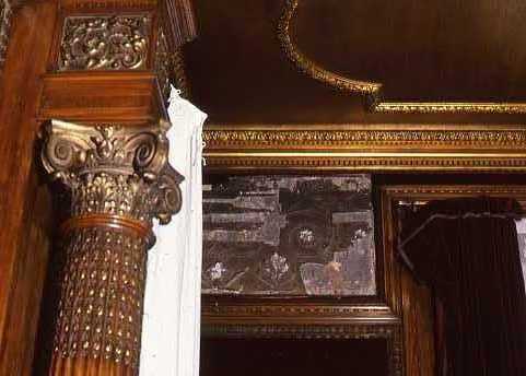 The interior finishes at Clayton are elaborate and the effect can be overwhelming. As John Robbins, project architect with supervising architectural firm The Office of Thierry W. Despont, described in a 1987 interview with The Pittsburgh Press, “Every room that you enter, you’re besieged with an onslaught of exotic finishes.” 1 Few expected that those finishes concealed even more decorations beneath.