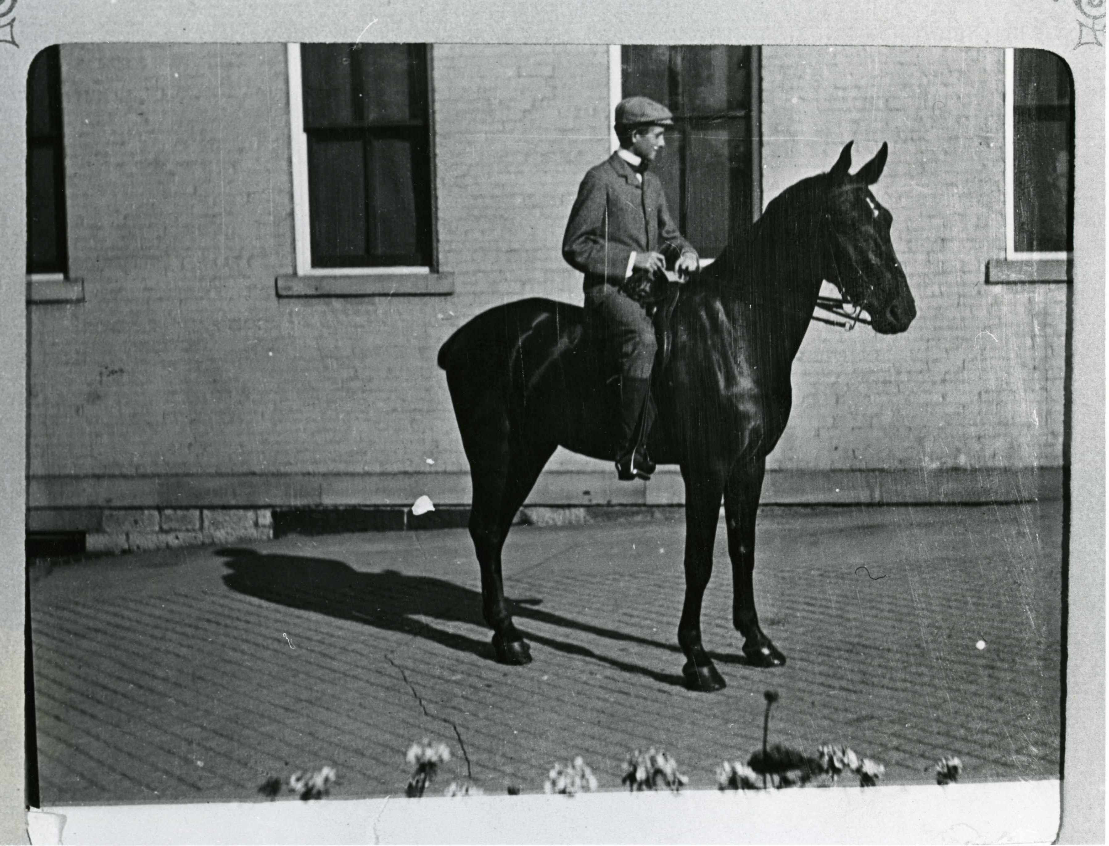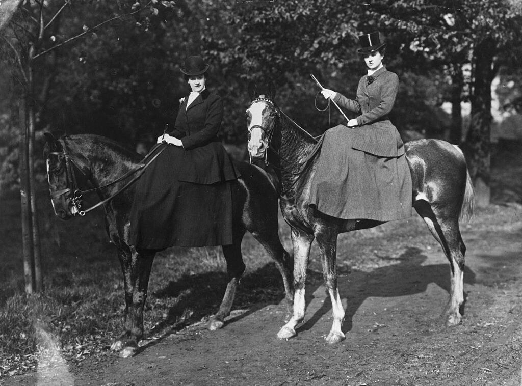 Two ladies pose in riding habits, on their mount, c. 1907. Courtesy Getty Images.