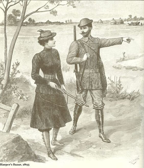 Lady’s Hunting Costume and Gentleman’s Shooting Suit, 1893. Courtesy of Harper’s Bazaar, 1893.