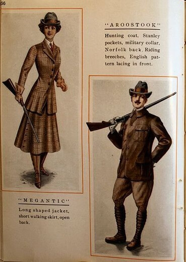 Lady and men’s Norfolk jacket, c. 1900. Courtesy of Abercrombie & Fitch Co.