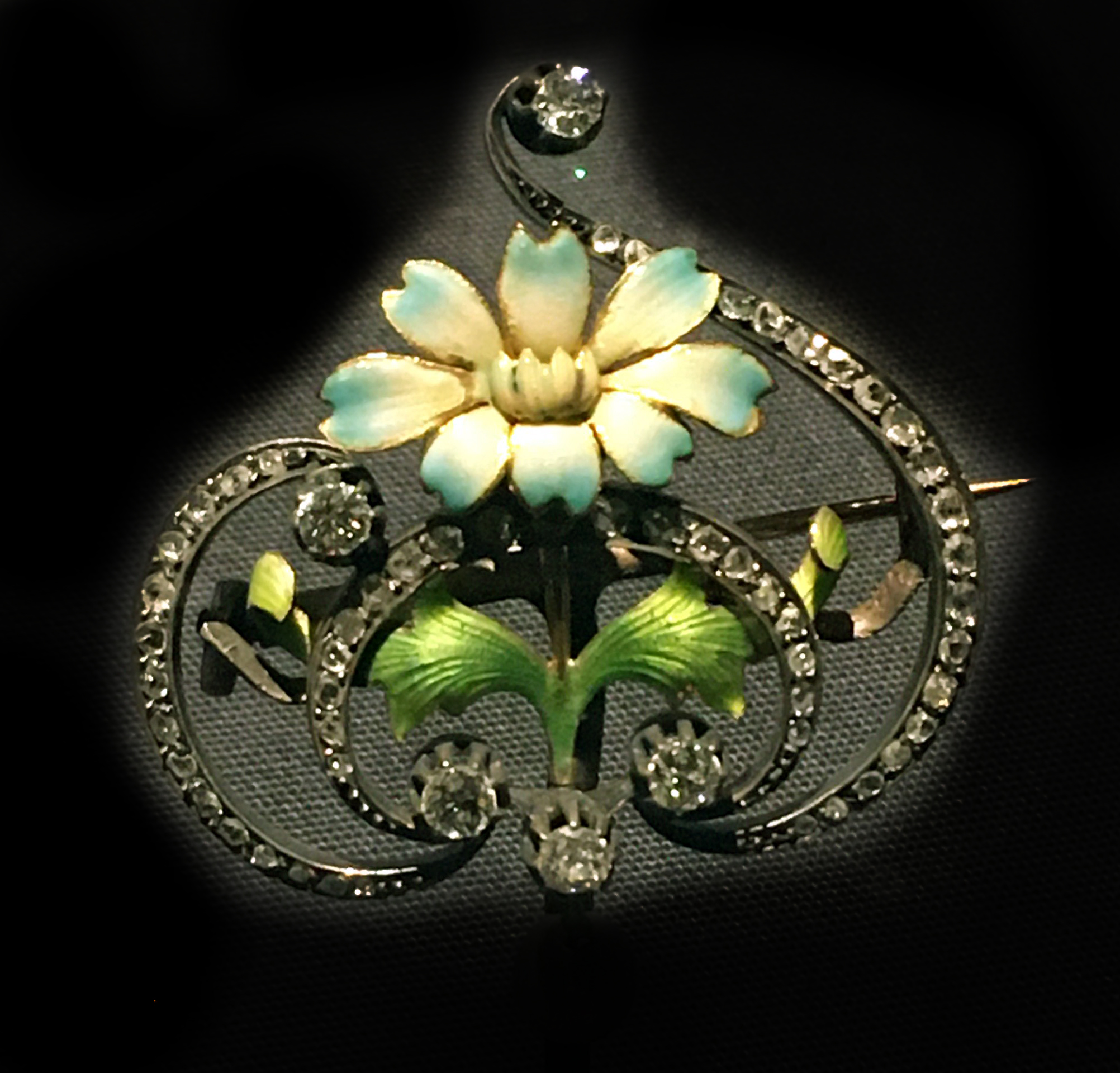 She went straight to the brooches, with their fantasies of flowers.