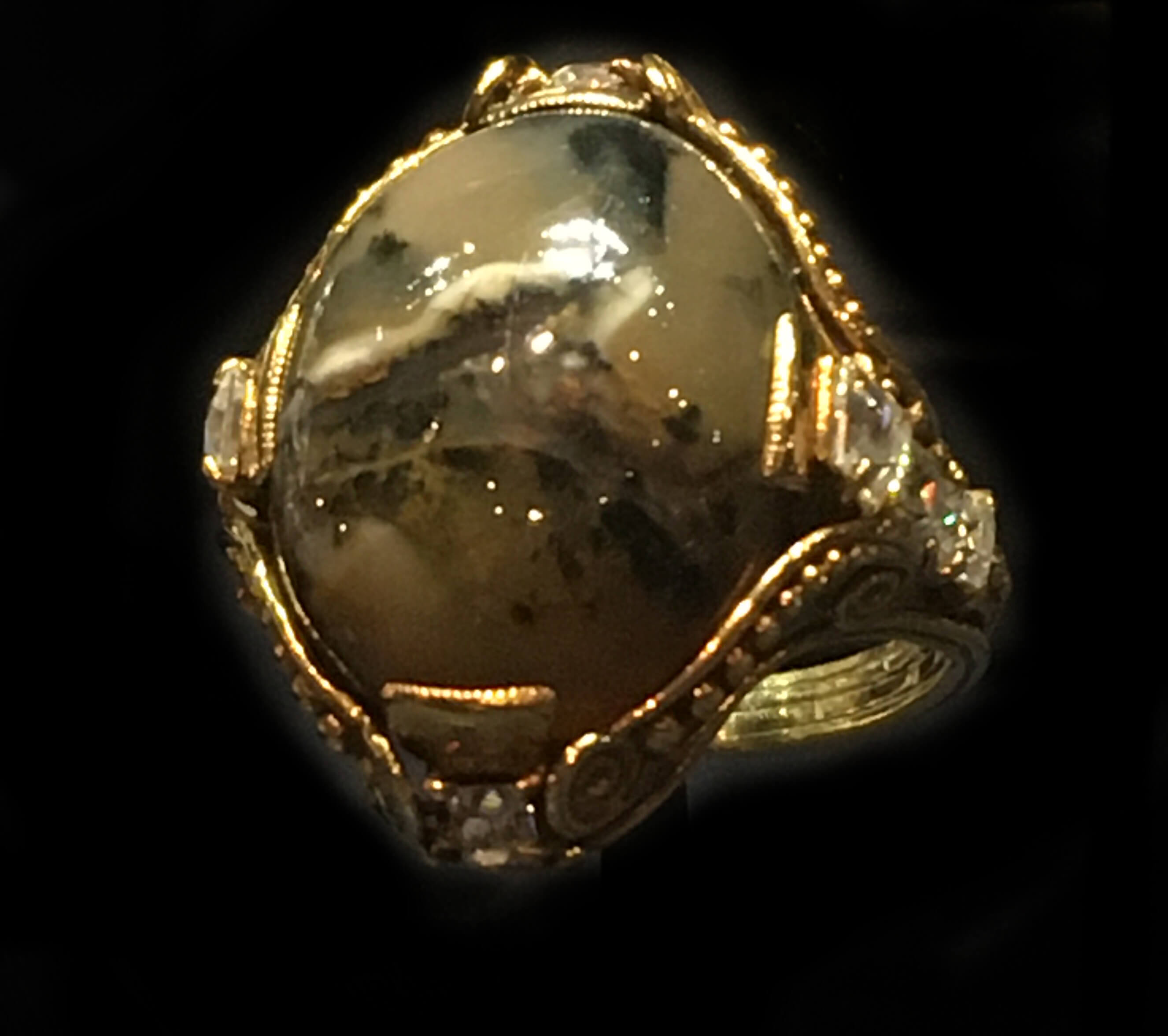 edged with turquoise, rimmed with gold. A diamond as crown,