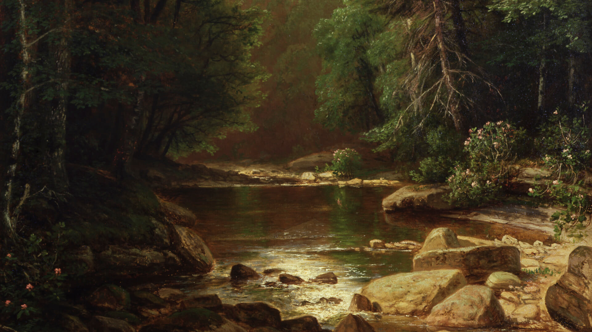 George Hetzel (American, 1826–1899). Landscape with River, 1880. Oil on canvas, 45 x 30 in. Frick Art & Historical Center, Pittsburgh, 1984.33.