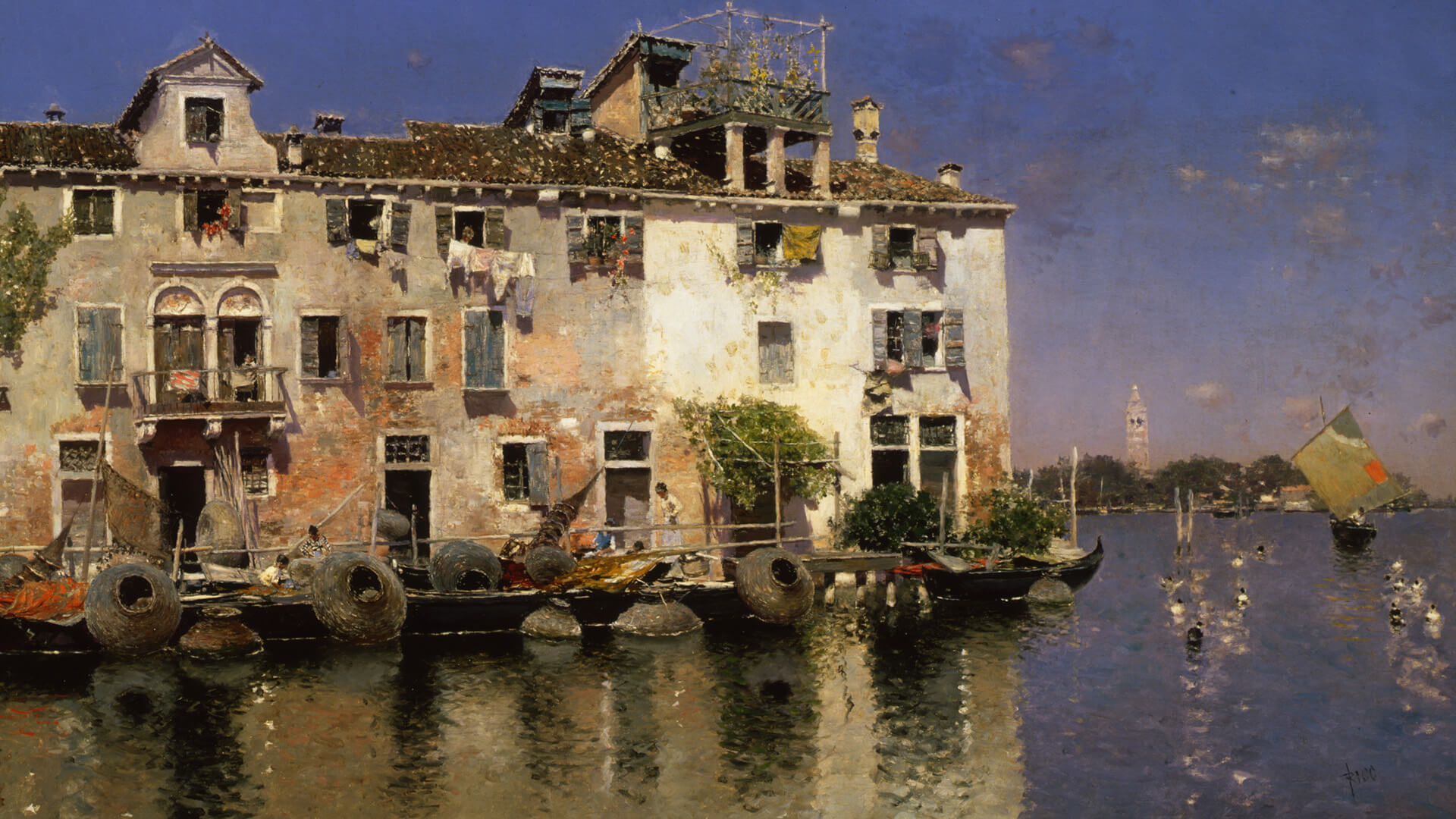 Martin Rico y Ortega (Spanish, 1833–1908). Fishermen's Houses on the Island, c. 1890s. Oil on canvas, 17 x 28 in. Frick Art & Historical Center, Pittsburgh, 1984.62.