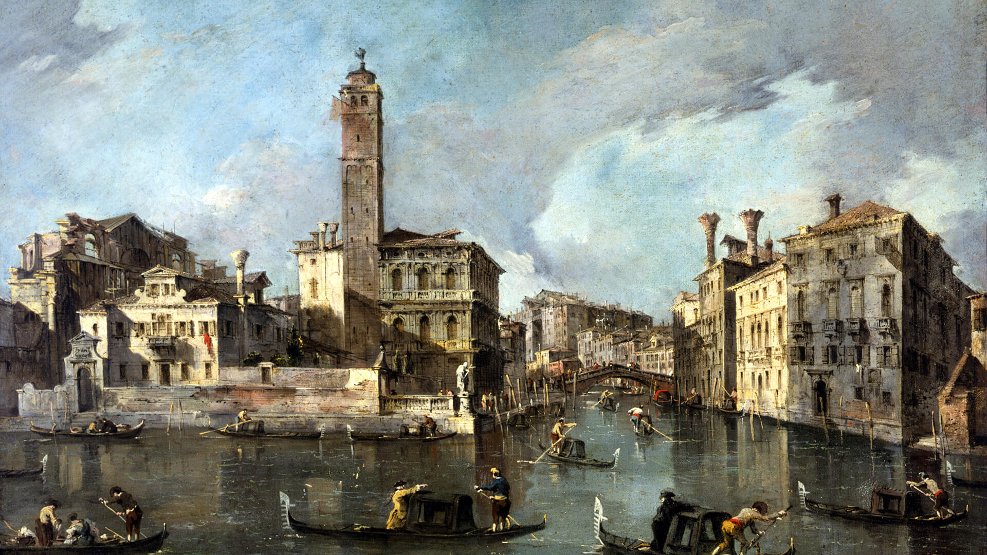 Francesco Guardi (Italian, 1712–1793). View on the Grand Canal at San Geremia, Venice, 1760-1765. Oil on canvas, 24 1/2 x 31 in. Frick Art & Historical Center, Pittsburgh, 1984.26.