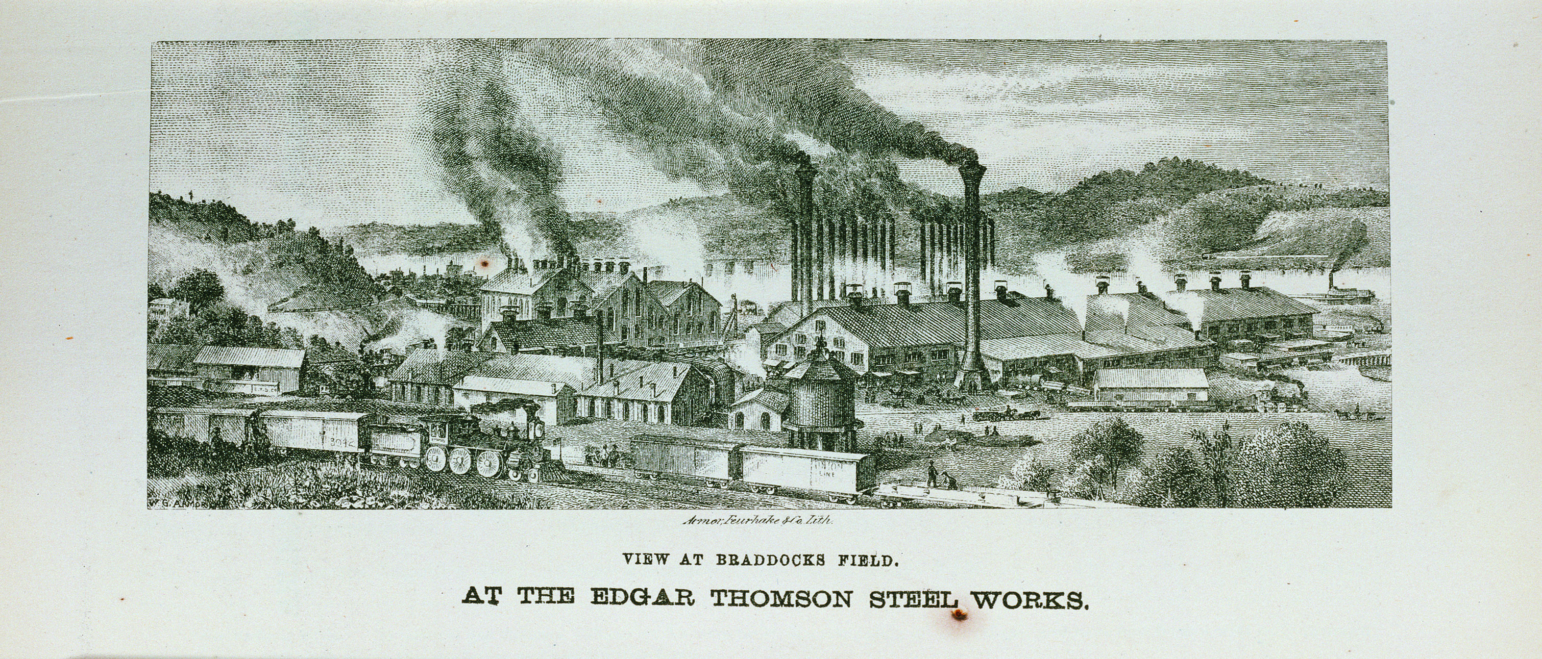 View at Braddock's Field. At the Edgar Thomson Steel Works, 1876. Published by Armor, Feuerhake & Co.