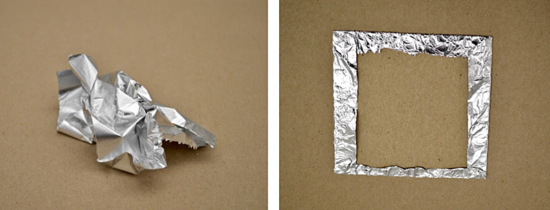After you finish tracing your picture, take the piece of aluminum foil and gently crinkle the foil. Then flatten it out and wrap it around the piece of cardboard.