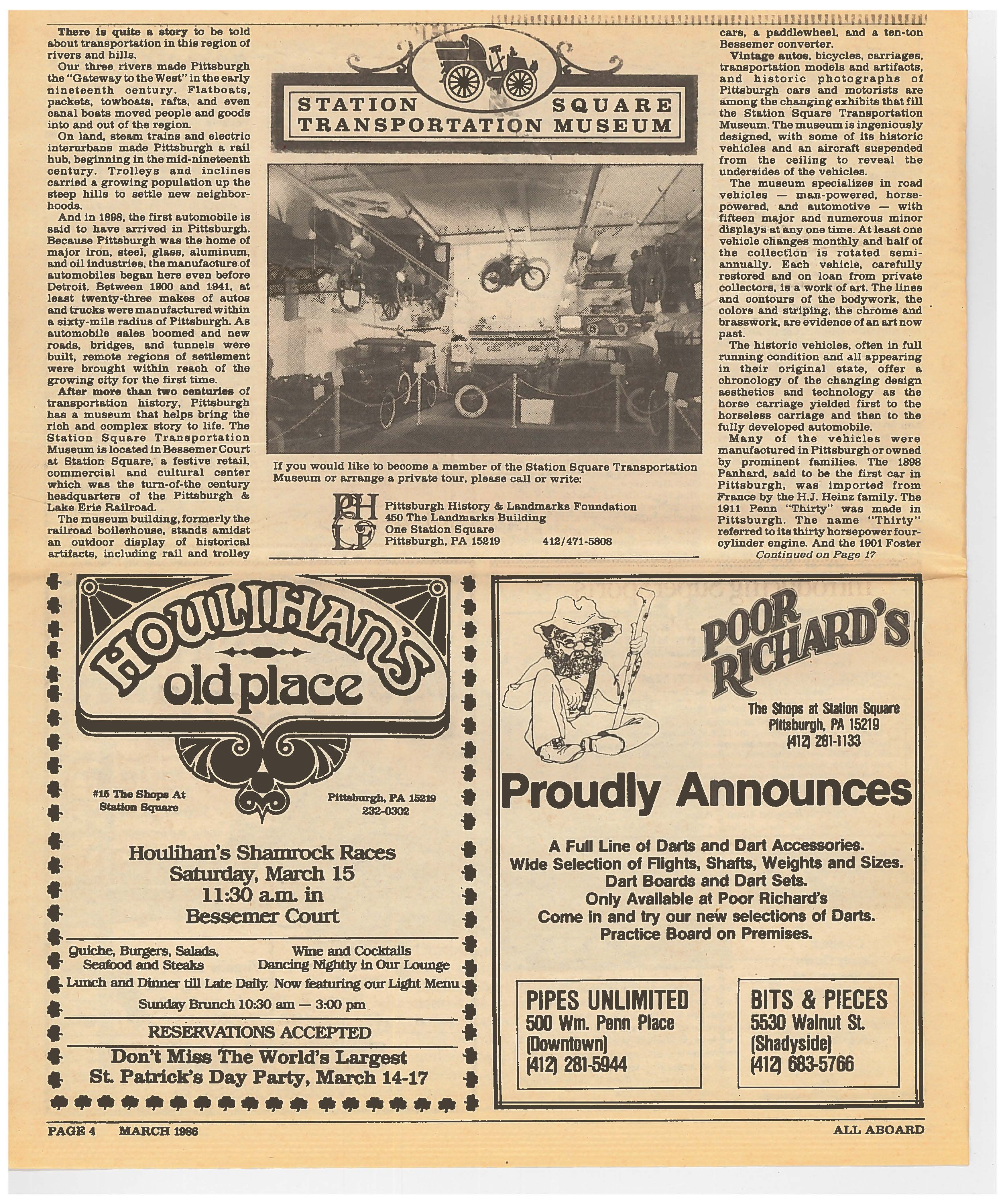 Station Square Transportation Musuem article in All Aboard, 1986 Vol. V No. 1 March. Image courtesy Pittsburgh History & Landmarks Foundation.