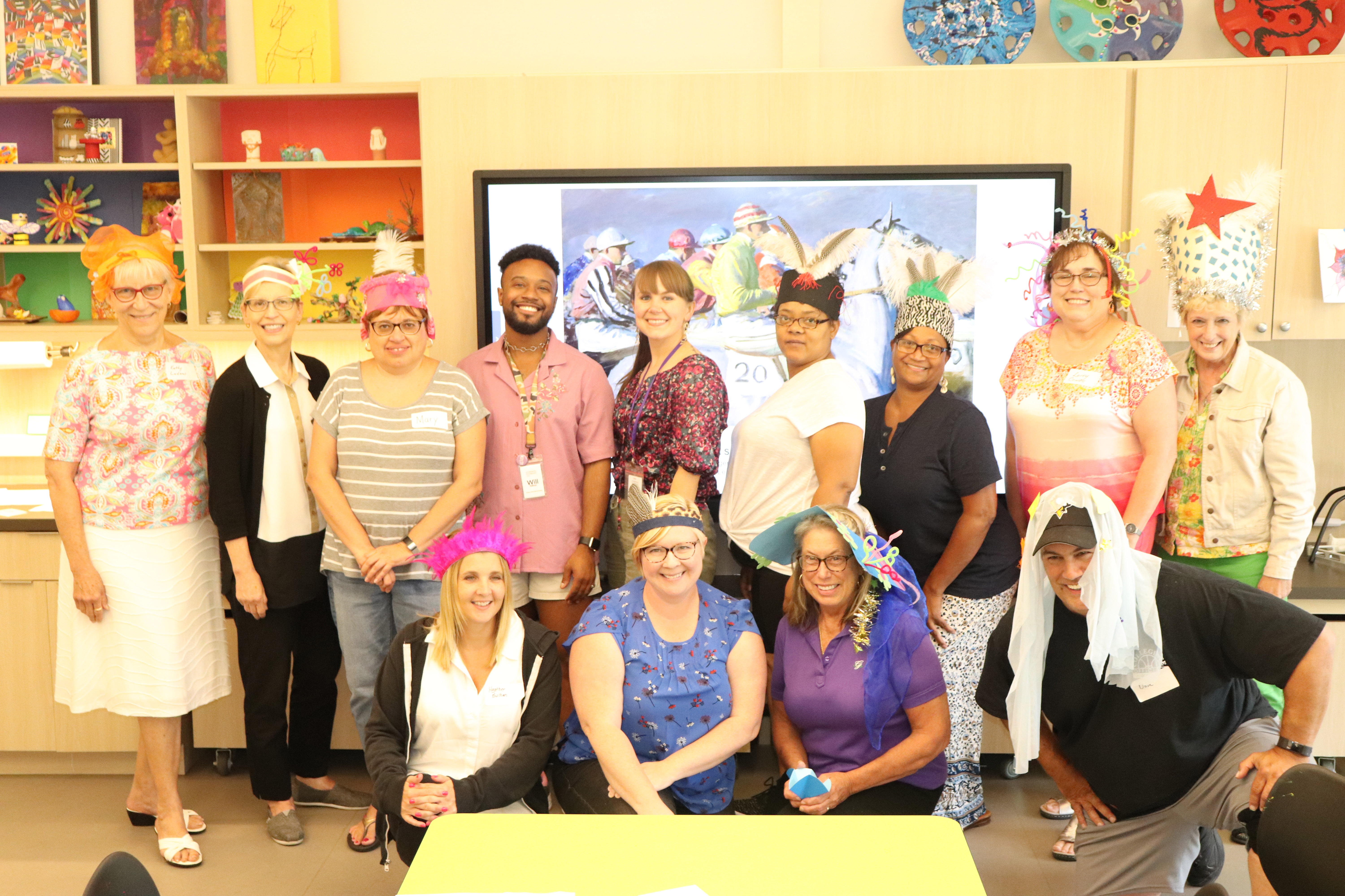 We started off with a tour of The Frick Art Museum’s current exhibition, A Sporting Vision, which served as a springboard for discussions about movement, play, and narrative. The rest of the day was filled with other fun and instructive activities, including lessons in stop-motion animation, movement exploration, and collaborative story telling. The workshop ended with a room full of professional adults tapping into their creativity and sense of joyful exploration by making and wearing a hat that represented them. A day can be counted as a success if feathers and fabric need to be picked up off the floor!