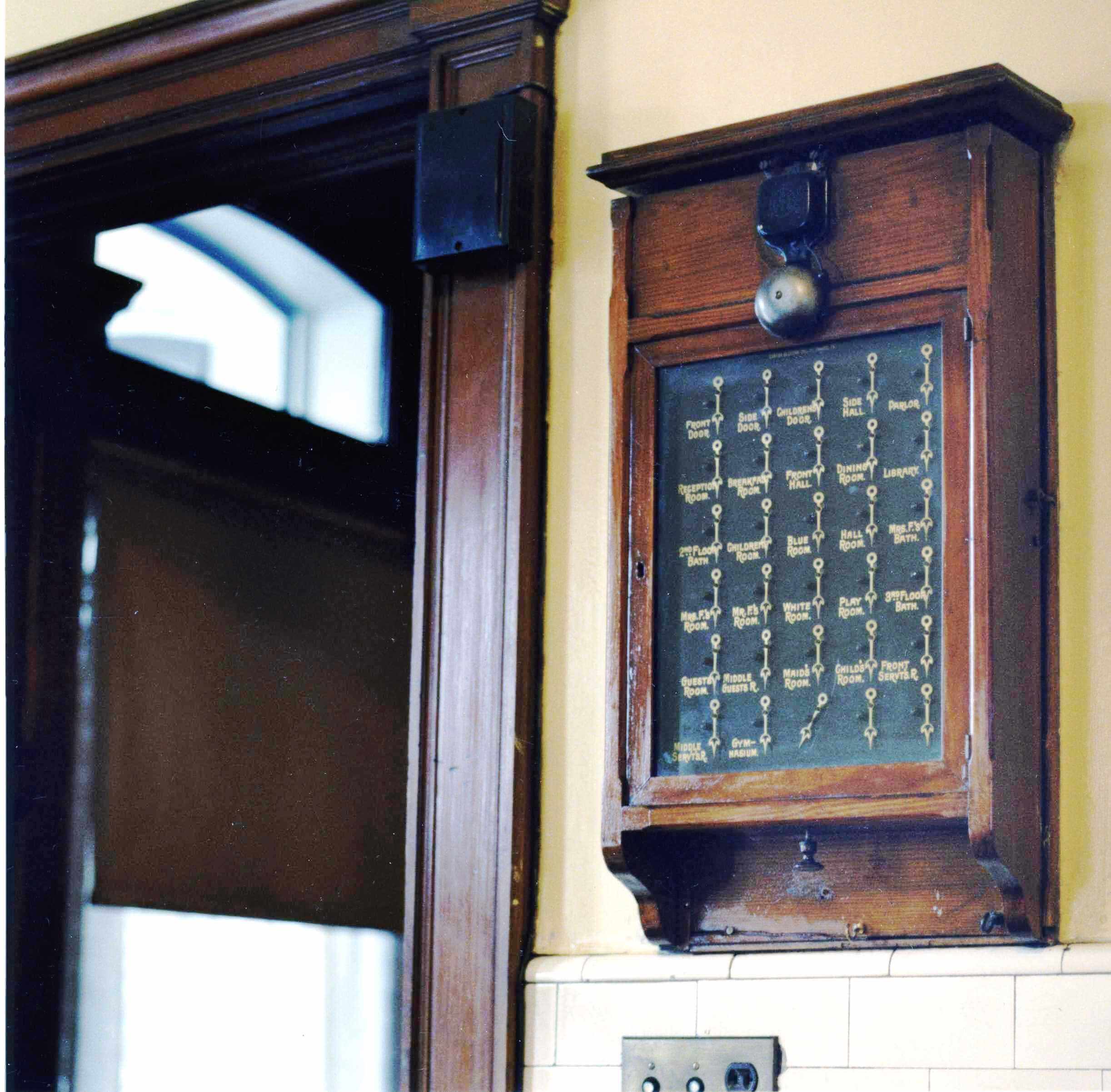 The result is a meticulous restoration that conjures the hustle and bustle of a domestic space at the turn of the twentieth century. When visitors see the space today, it evokes the aroma of delicious dishes, the sounds of clanking pots and dishes, and the busy work of the domestic staff who managed daily life at Clayton, some whose names we know and others that have been lost to time. It’s easy to imagine Spencer Ford preparing meals at the range, deliveries arriving at the kitchen door, the butler Joseph Holyrod passing through to the wine cellar in the basement, and maids Briget Conroy and Mary Coyne scurrying to and fro filling trays, stacking plates, and storing pans, ready for the annunciator to ring again.