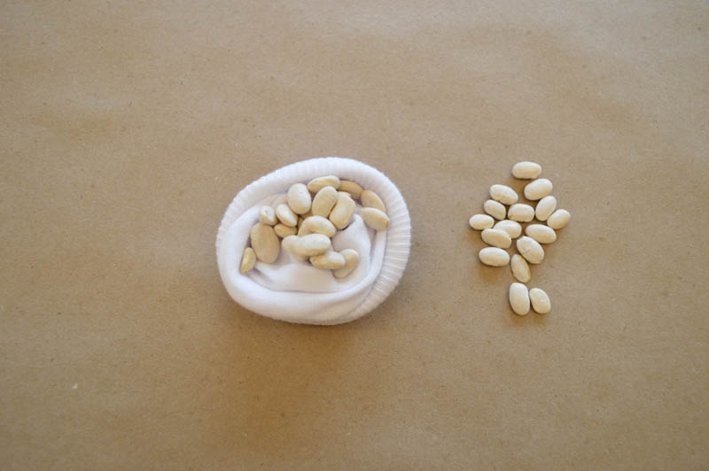 Scoop about 2 tablespoons of beans into the bottom of the sock to weigh it down.