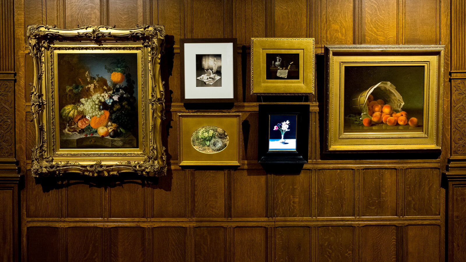 The next time you visit The Frick Art Museum (maybe before A Sporting Vision closes on September 8), be sure to visit the Jacobean Room for a rare treat. For a short time, we have created a beautiful installation of still lifes from across the collection, including three paintings that are normally displayed at Clayton, a photograph that was brought out of storage, and a recently acquired video work.