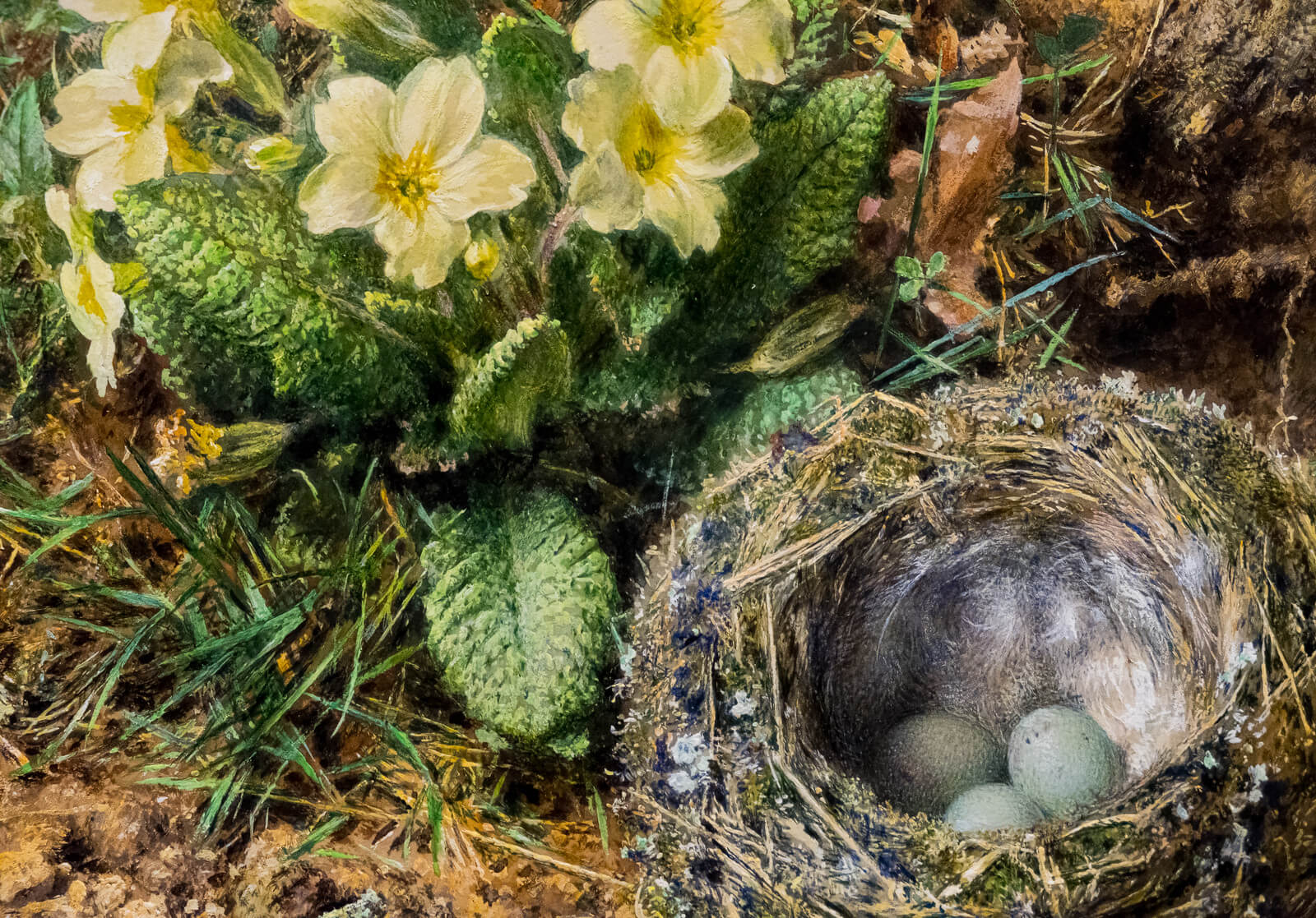Center, lower left: William Henry Hunt (English 1790–1864). Bird’s Nest, c. 1850–64. Watercolor and gouache on paper.