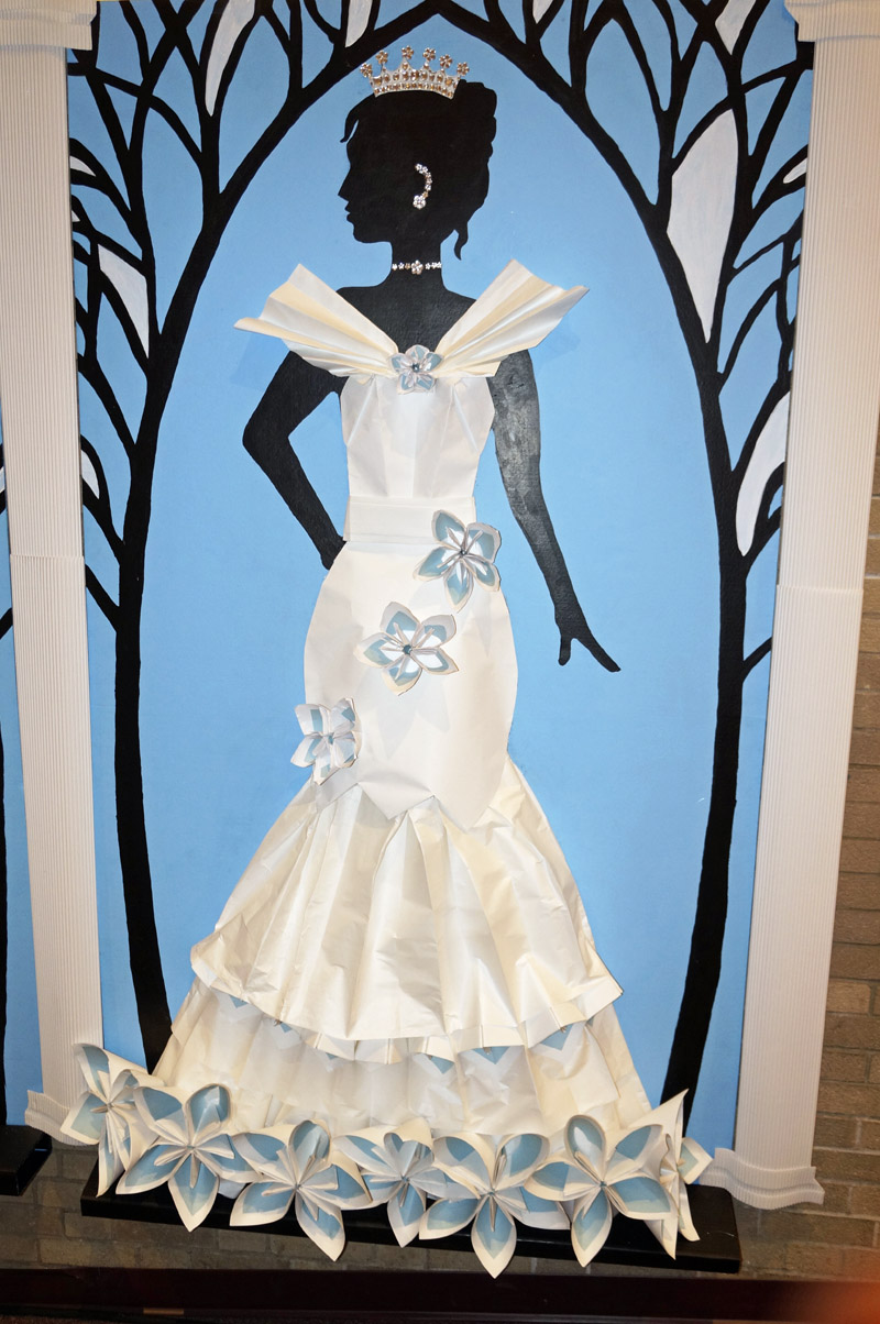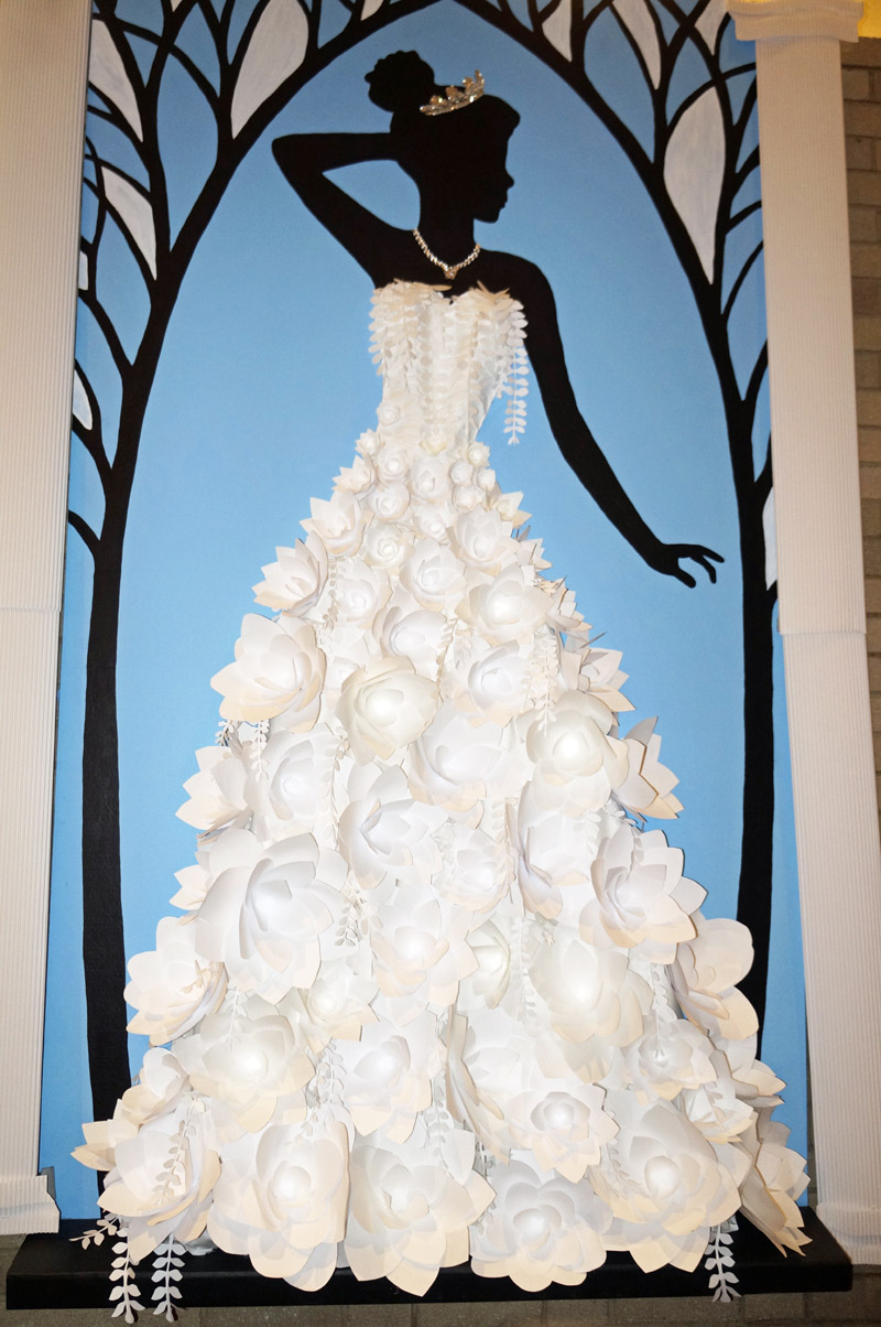 It is possibly because of paper’s accessibility to us all that her works seem that much more unbelievable, but Isabelle isn’t the only artist creating remarkable works from this everyday material. In the spring of 2017, under the direction of their art teacher, Diana Pazuchanics, talented young artists in the McKeesport High School Academy Art class created “The Cinderella Collection”— large-scale works of paper art that hung in the auditorium and supported the theme of the high school musical.