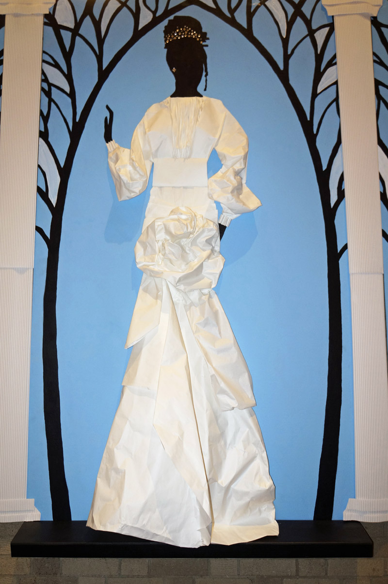 Below you can see images of the dresses created by the McKeesport art students. Although these paper creations were made long before Isabelle de Borchgrave’s work filled our galleries, these students were channeling the same inventive and experimental spirit as they turned one of the most every day materials into something extraordinary.