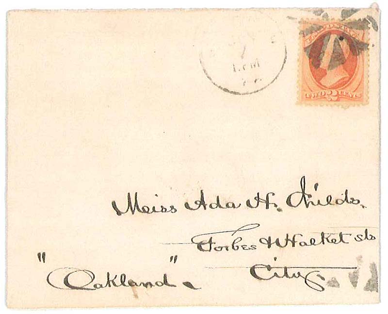 The marriage took place on December 15, 1881 at the Childs residence, where Adelaide lived with her widowed mother and beloved sister Martha, known as Attie. The family home stood just east of the city, at the corner of Forbes and Halket streets where Magee Hospital is located today. The elegant invitation, shown here, includes the interesting error of a misspelling of Adelaide as Adalaide – a mistake remarked on by daughter Helen in a scrapbook of family memories.