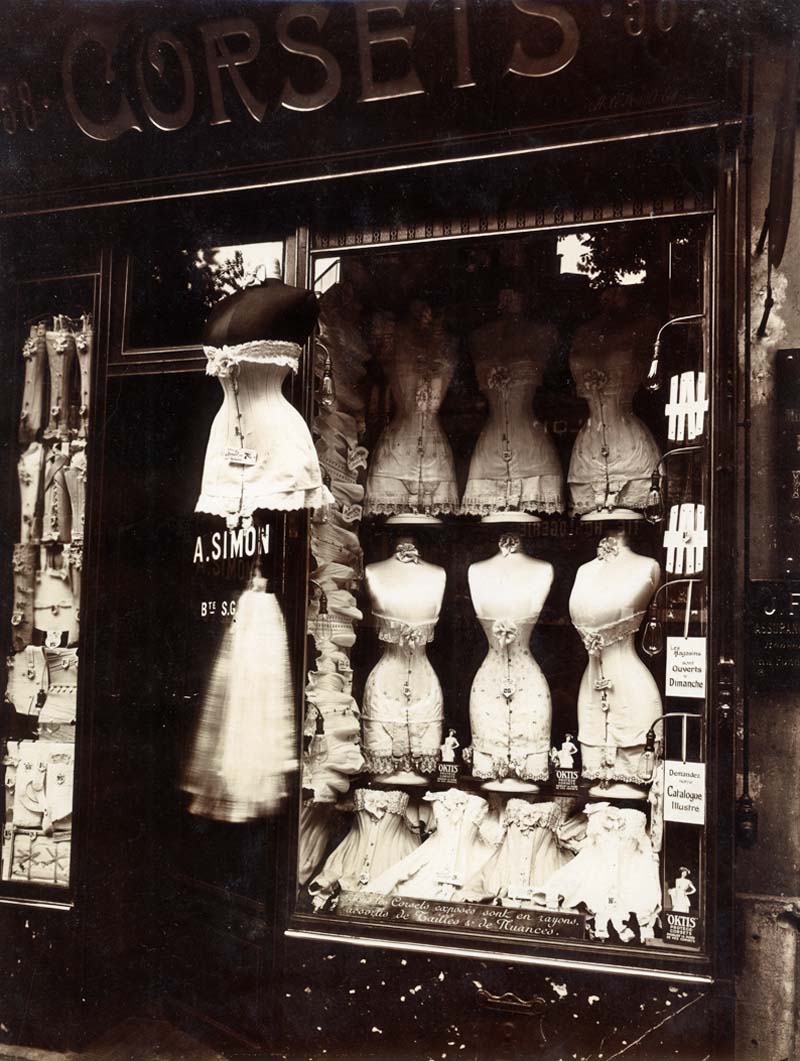 Eugène Atget (French, 1857–1927), Boulevard de Strasbourg, Corsets, 1912. Albumen print.