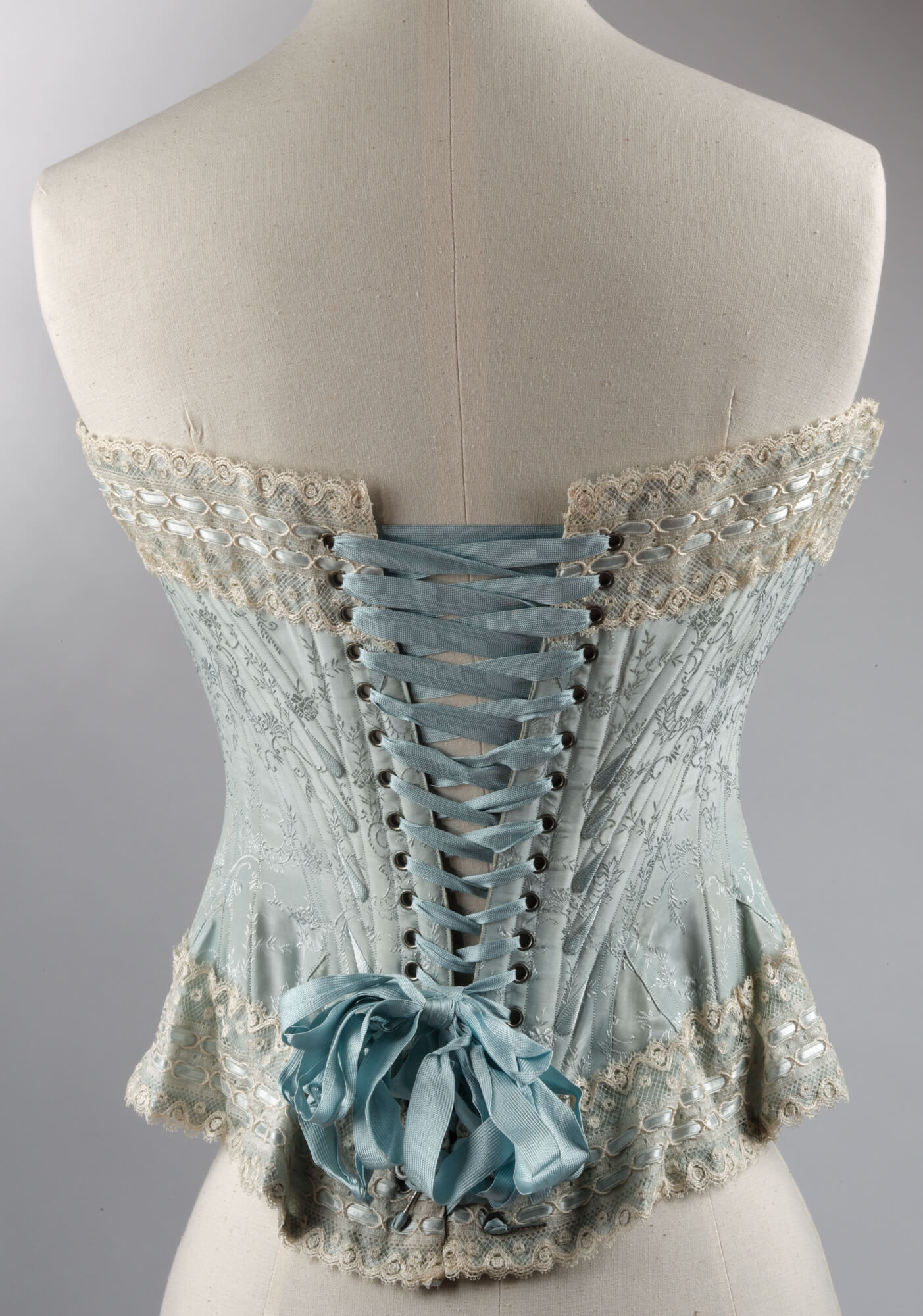 Au Louvre, retailer. Corset, c. 1895. Silk damask and lace. The Frick Pittsburgh.
